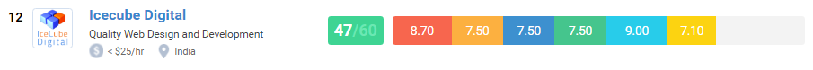 Based on their Number of Reviews, Portfolio, Market Penetration, Experience, E-commerce Development, and e-commerce design, Webnexs’ scorecard highlights its performance by scoring 48 points out of 60.
