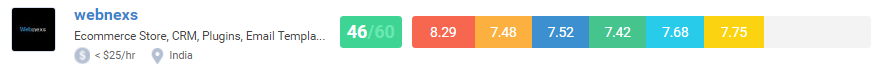 Based on their Number of Reviews, Portfolio, Market Penetration, Experience, E-commerce Development, and e-commerce design, Webnexs’ scorecard highlights its performance by scoring 46 points out of 60.