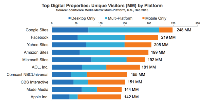 If you look at the statistics, Google sites have larger cross-platform audiences. Many people access sites like Facebook, Yahoo, and Amazon through mobile devices.