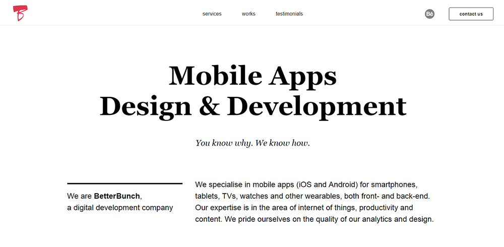 The Better Bunch is another digital development company in Russia. It offers services in app design and development for smartphones, tablets, wearables and TV. In a reasonably short period, since its inception in 2011, the company has earned the reputation of delivering on promise and meeting client’s expectations.